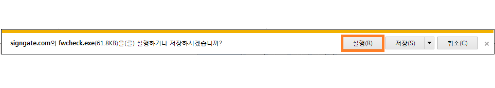 하단의 "signgate.com의 fwcheck.exe을(를)